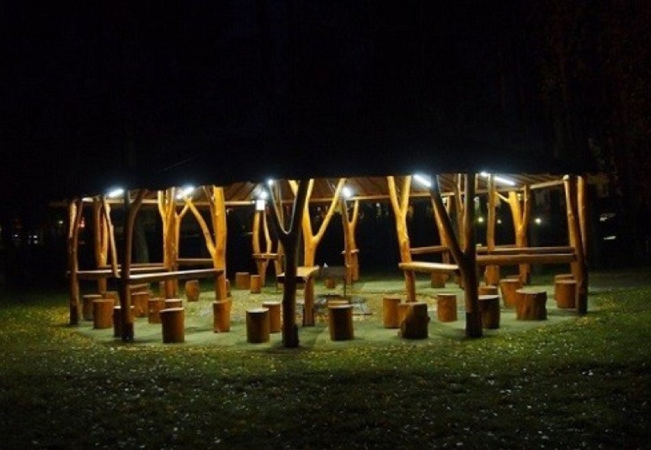 Также установлен комплекс уличных тренажеров под теневым навесом и с резиновым напольным покрытием для тренировок на свежем воздухе, которые тонизируют мышцы, снимают стресс, улучшают деятельность дыхательной и сердечно-сосудистой системы, способствуют ускорению обмена веществ.