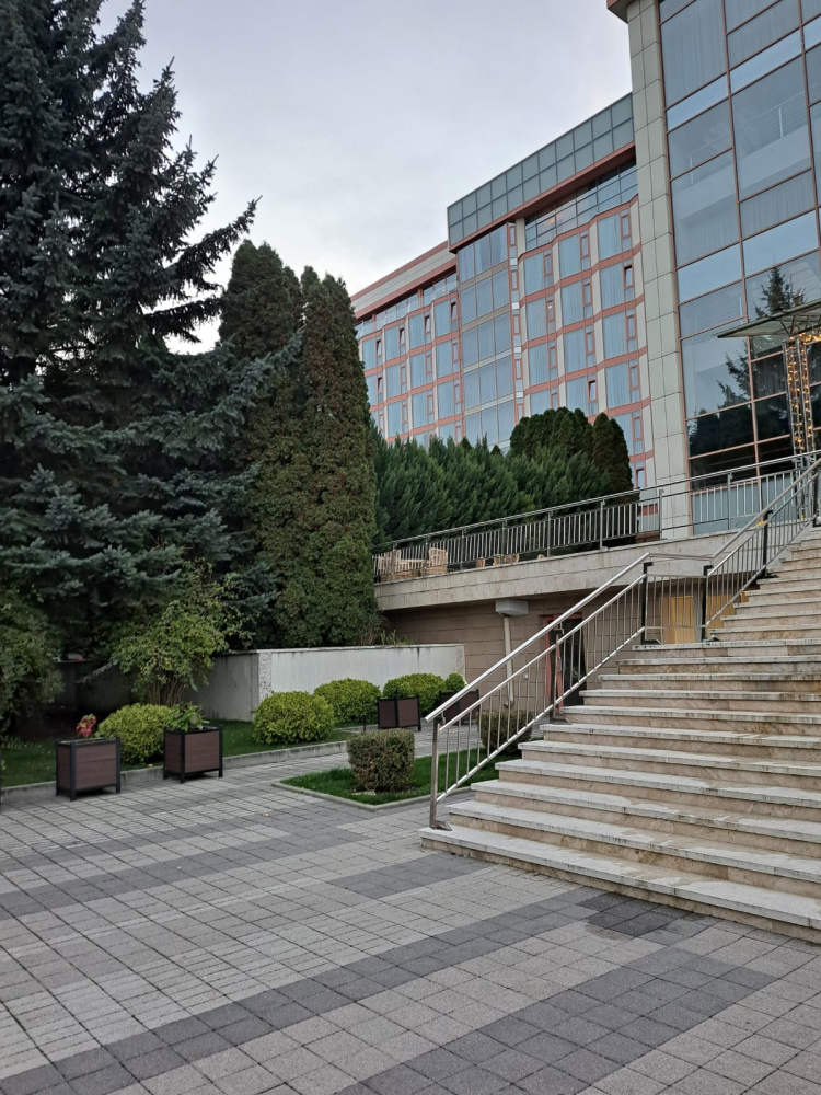 - Номера с панорамными окнами с видом на Эльбрус, Кавказский хребет, парк санатория. Во всех номерах: хороший Wi-Fi, климат-контроль, сейф, холодильник, чайная станция, фен, халат, тапочки, косметический набор