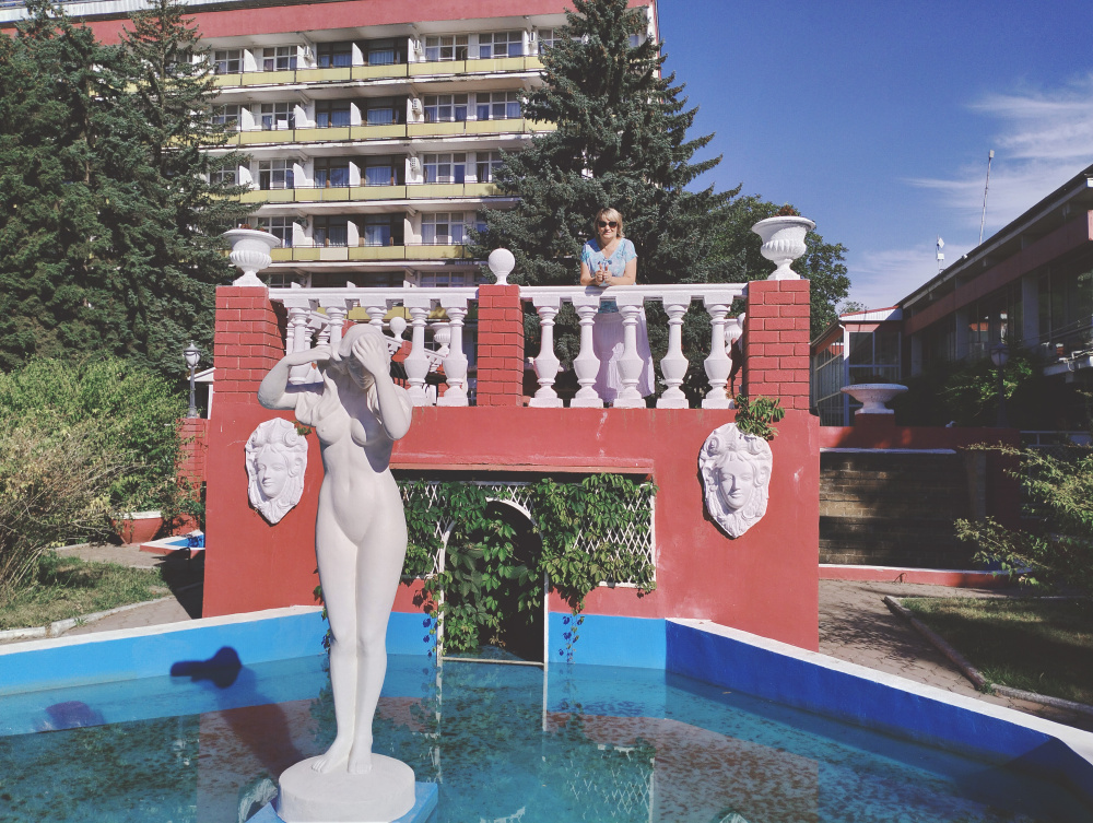 В парке санатория установлен бельведер со статуей богини Победы — Викторией.