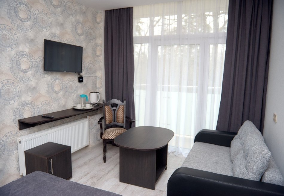 Санаторий, разместившийся на месте бывшего Свято-Тихановского монастыря, занимает территорию площадью более 7 гектаров. Здравница включает в себя три многоэтажных спальных корпуса и один лечебный, все корпуса связаны между собой теплыми крытыми переходами. Обширный жилой фонд предлагает гостям одноместные и двухместные номера, оснащенные индивидуальным санузлом. Во всех комнатах есть телевизор, электрочайник и холодильник, а в номерах улучшенных категорий предусмотрена мини-кухня.