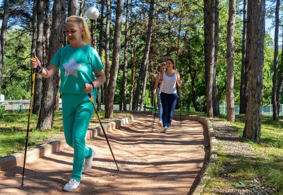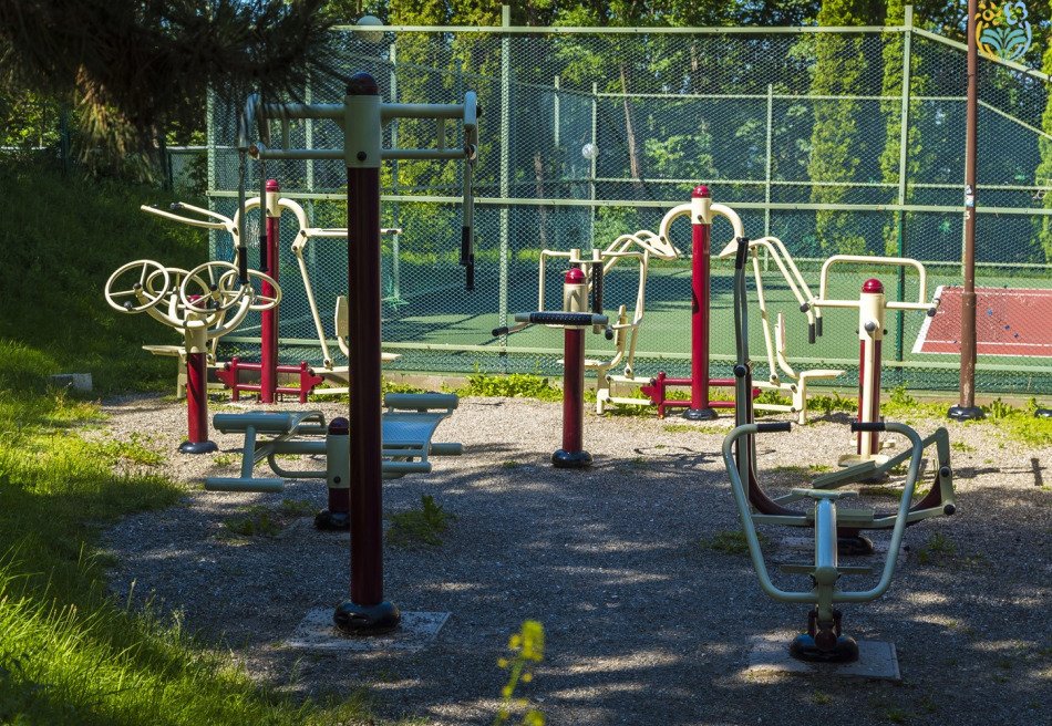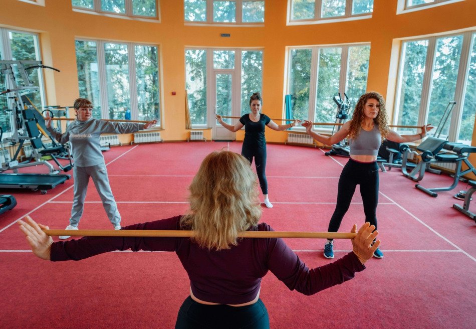 - Здоровое движение: плавание, тренажёрный зал, волейбольная и баскетбольная площадки, теннисный корт, бильярдный зал. ЛФК классическое и с тренером на терренкуре «Туристическая тропа», есть трассы для беговых лыж