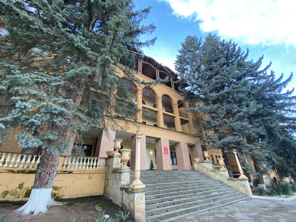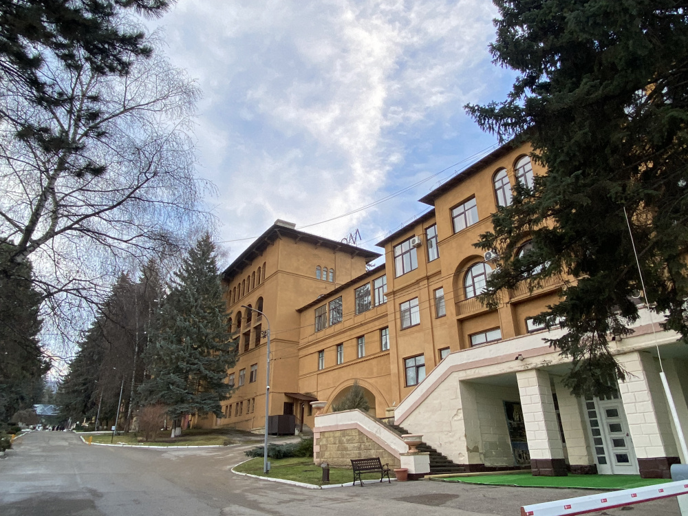 - Уединенная часть города на отрогах Джинальского хребта. 5–7 минут прогулки до Верхнего парка, 7–10 минут до Курортного бульвара на такси или общественном транспорте (остановка у входа в санаторий)