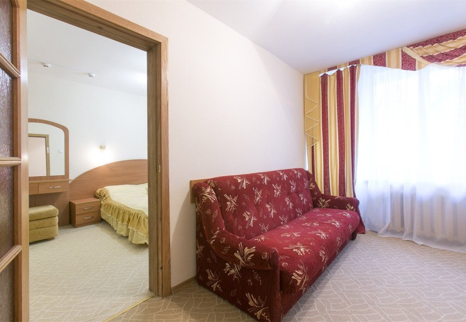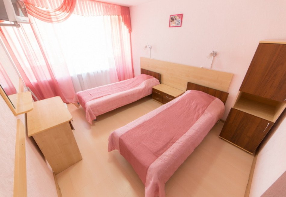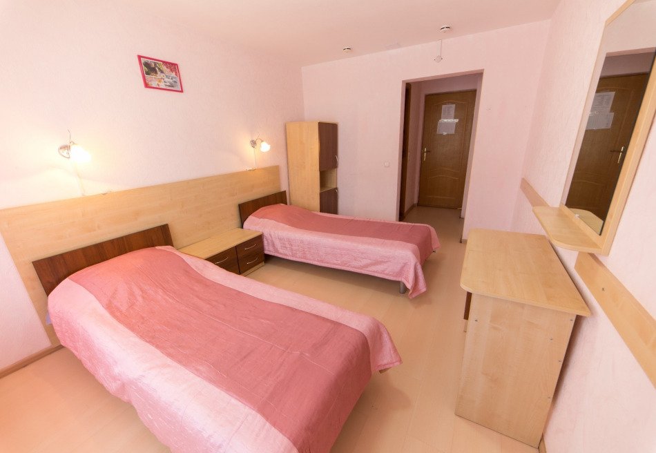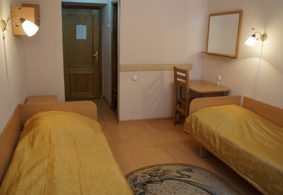 Для проживания есть несколько типов номеров: эконом двухместный, улучшенный двухместный, улучшенный двухместный номер в двух комнатах, люкс – двухместный в двух комнатах, обычный двухместный двухкомнатный номер, стандартный двухместный однокомнатный номер.