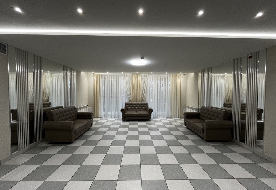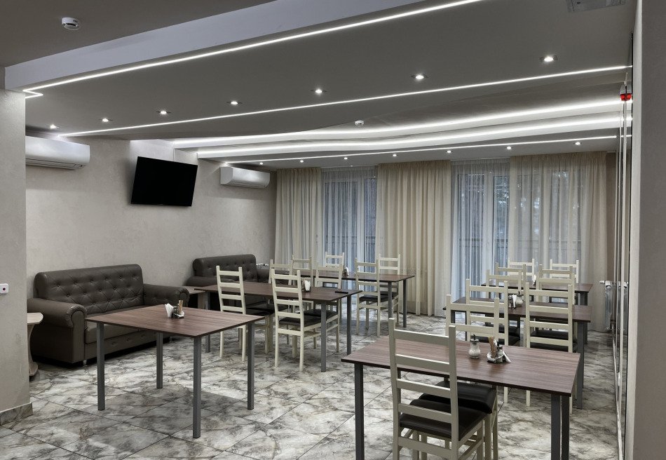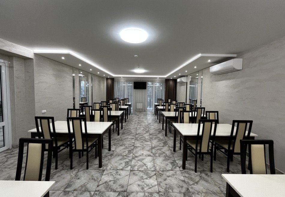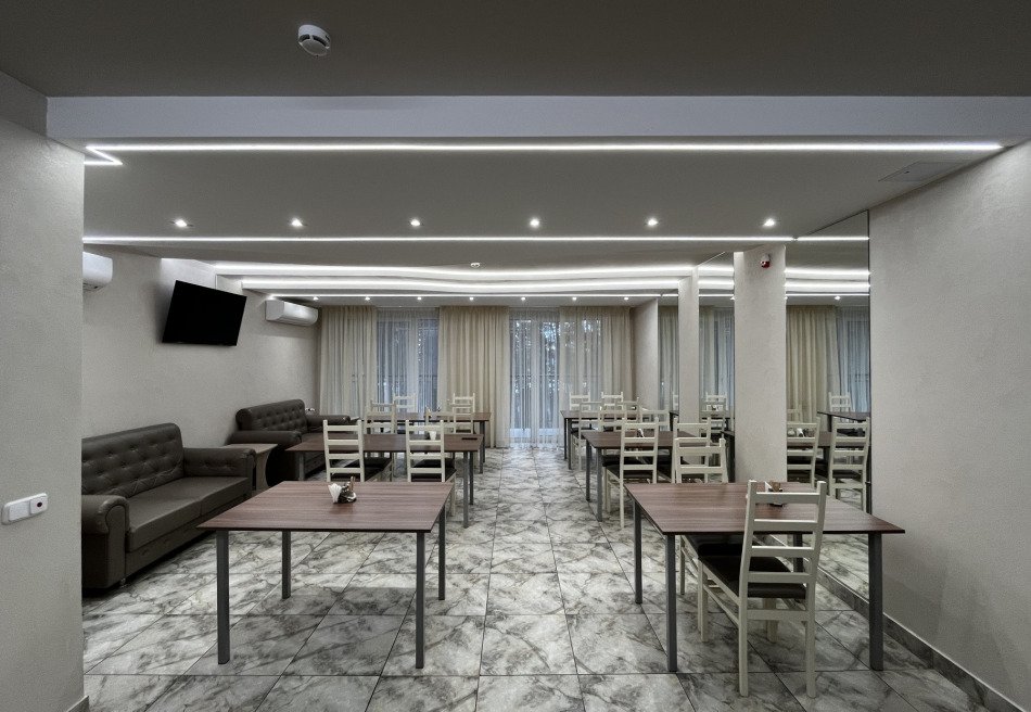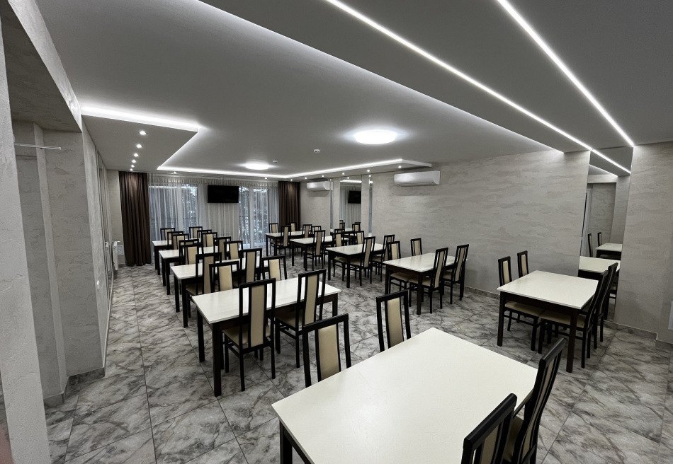 В распоряжении гостей современный обеденный и банкетный залы вместимостью до 90 человек, кинотеатр, игровая комната, комната отдыха, кафетерий, сауна с бассейном, тренажерный зал, прачечная и сушилка. На территории комплекса также есть стадион, футбольное поле, баскетбольная и волейбольная площадки, игровые зоны, теннисные столы, уличные тренажеры и танцевальная площадка. В банкетном зале можно провести семейное торжество, корпоративное мероприятие или семинар. Медицинские профили санатория включают в себя общетерапевтическое направление, климатолечение, терапию нервной системы.