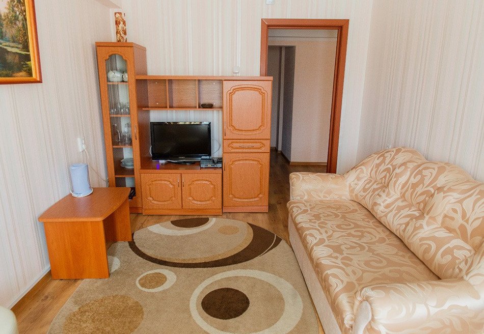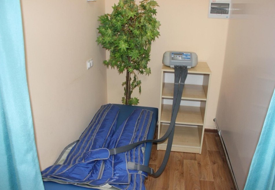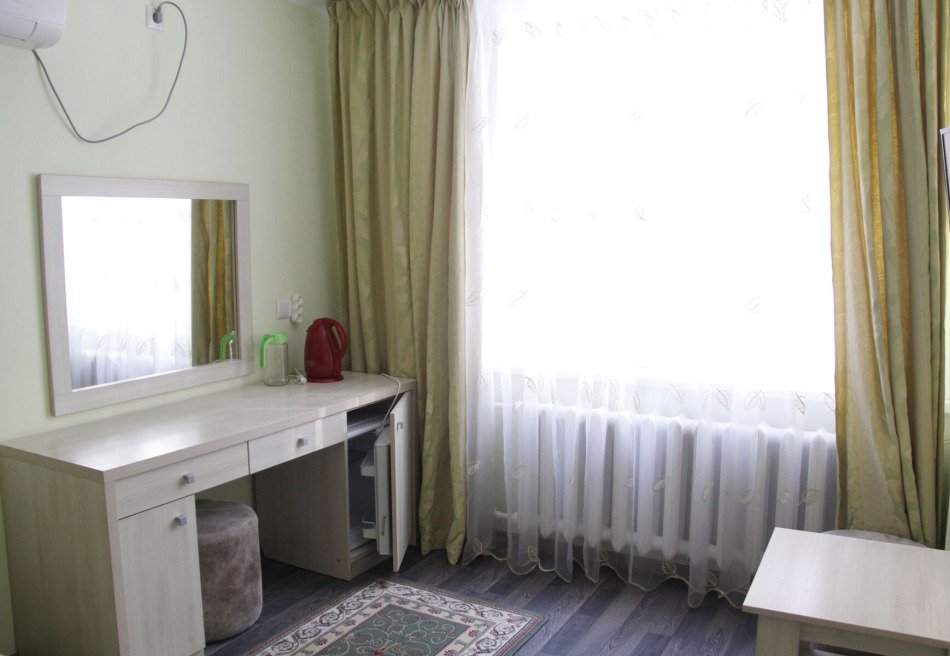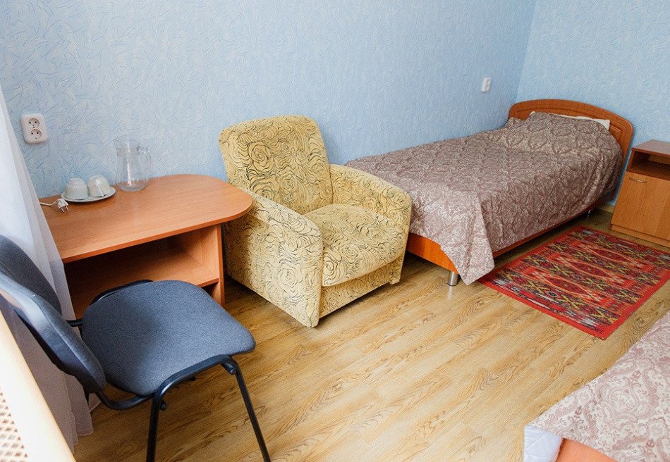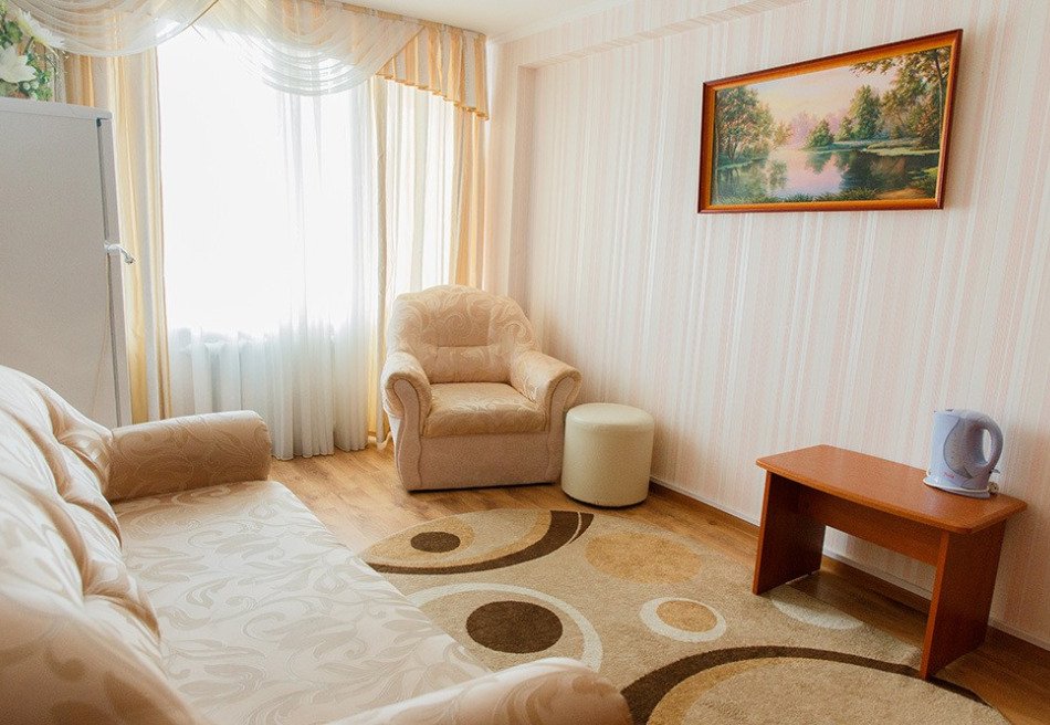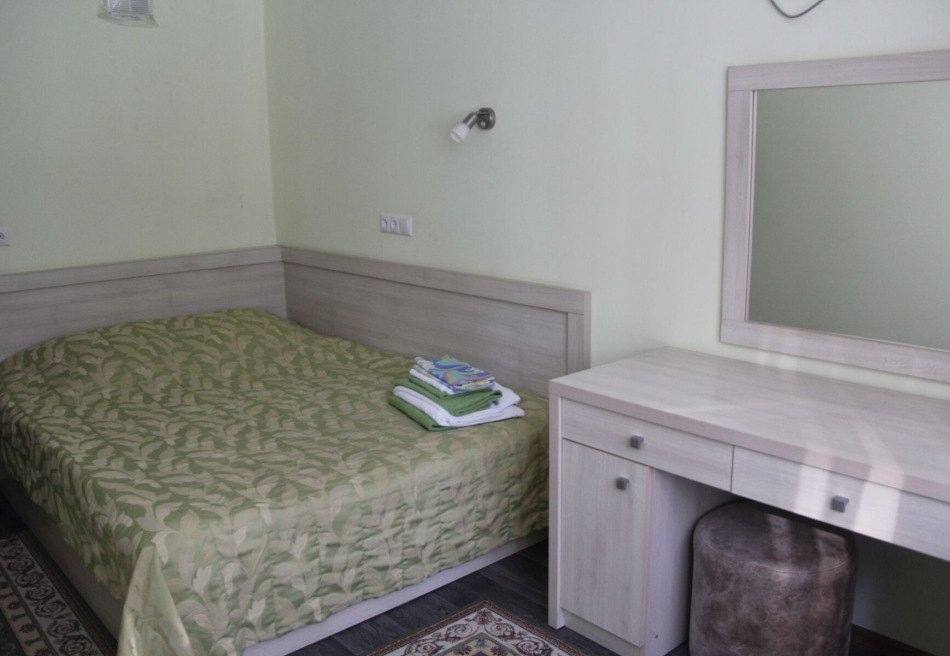 Спальный корпус имеет высоту в 8 этажей. Здесь же находятся столовая и лечебная зона. Во втором корпусе располагаются разнообразные развлечения, сухие углекислые ванны. В комнатах для гостей установлена необходимая мебель для отдыха, хранения одежды и личных вещей. К услугам гостей кондиционер, телевизор с плоским экраном, холодильник, электрический чайник. Санузел индивидуальный, с душем и туалетными принадлежностями. В санатории работает высокоскоростной интернет.