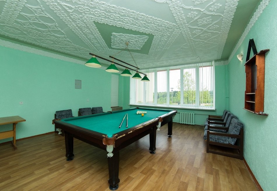В столовой гости могут приобрести 5-ти разовое питание, в том числе и диетическое по показаниям. На территории работает небольшой банный комплекс с сауной и крытым бассейном. Свой досуг можно скрасить за игрой в бильярд, просмотром кинофильмов или в караоке. Также в санатории регулярно проходят развлекательные мероприятия, устраиваются концерты. Для любителей активного образа жизни организованы спортивные площадки, есть фитнес-зал, можно поиграть в настольный теннис или заняться аквааэробикой.